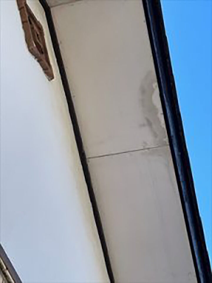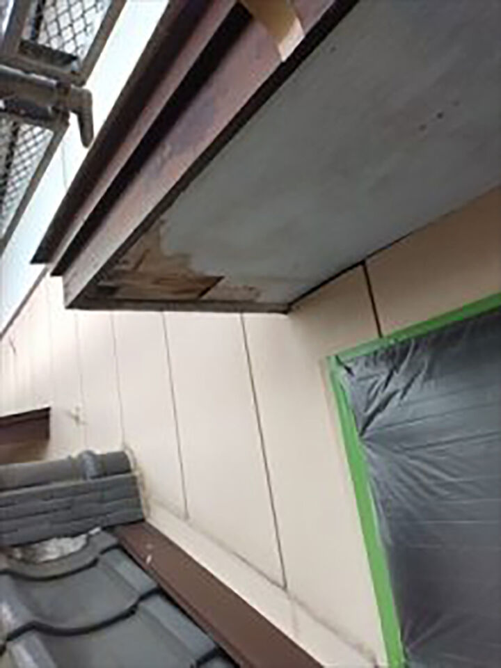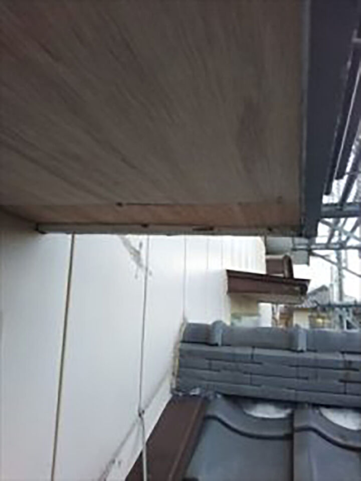 軒天(のきてん)は軒の天井のことです。軒天の一部が劣化し、剥がれてしまっていました。軒天の張替えをおこないました。