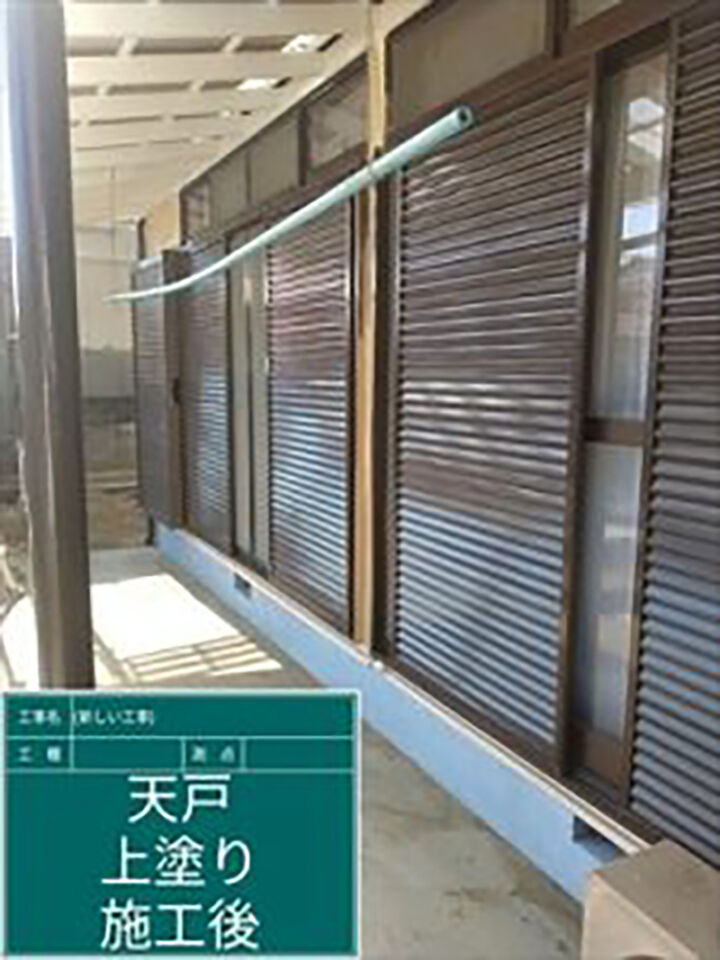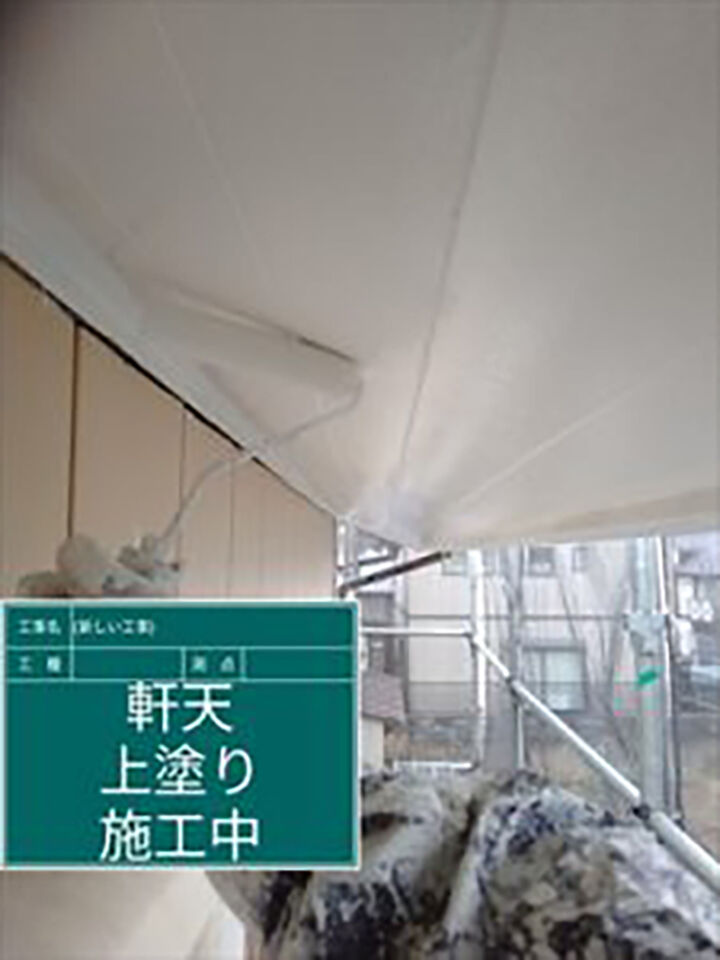 一部、張替えが必要となってしまった軒天の塗装は下塗り・中塗り・上塗りの3回の塗り重ねをおこないました。塗膜の厚みが増し丈夫になります。