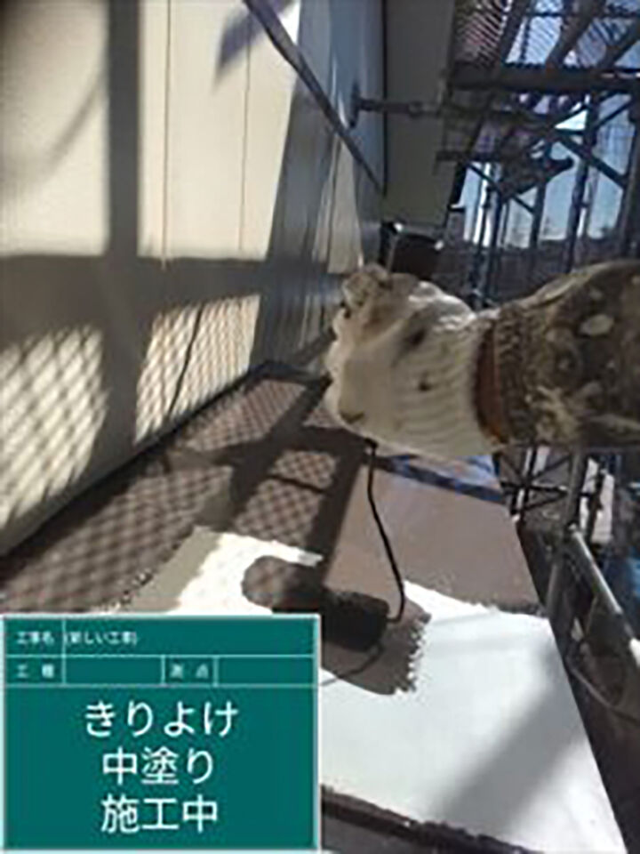 下塗り完了後規定の時間を置き、乾燥させてから中塗りをおこないます。塗装作業は、丁寧に塗り、きちんと乾燥時間を置き、また塗り重ねるという工程を繰り返します。