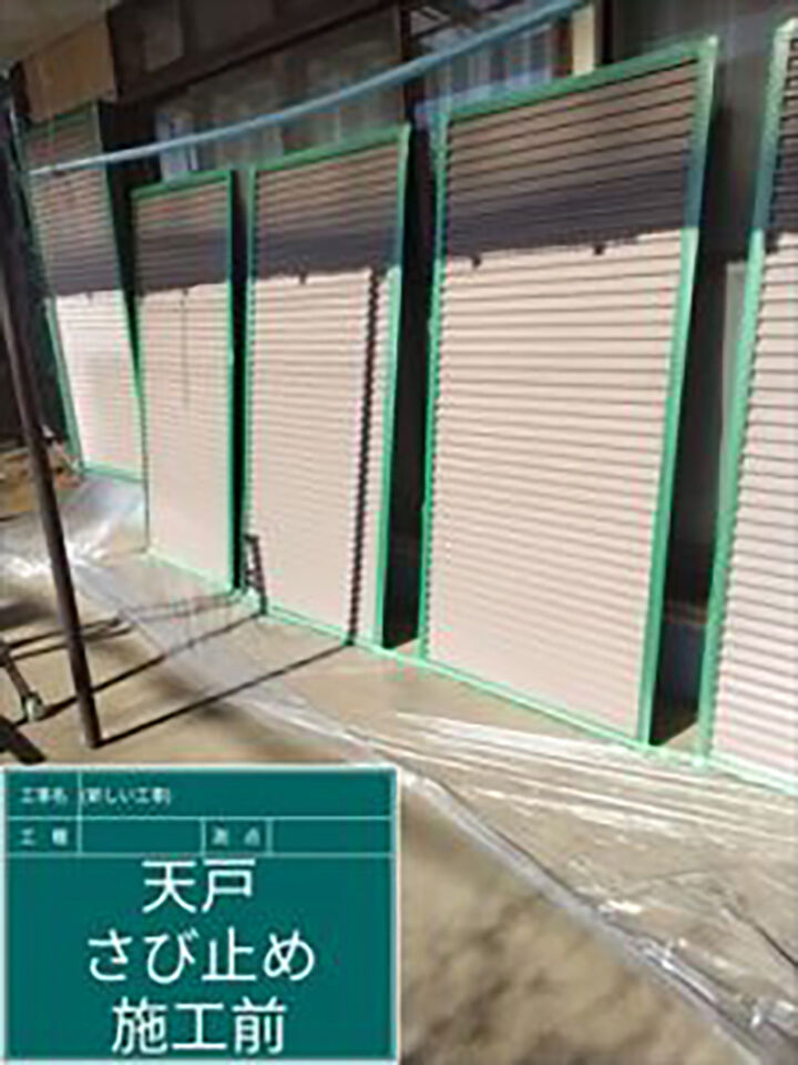 雨戸はレール部分は動きが悪くなるため、塗装はおこないません。養生テープでしっかり保護しておきます。雨戸の凹凸にも塗料がいきわたるように塗り広げていきます。