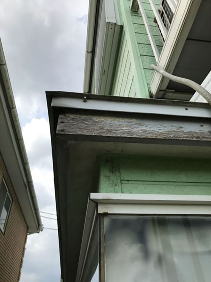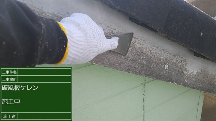 破風板の表面が 前の塗料が剥がれてボロボロです。