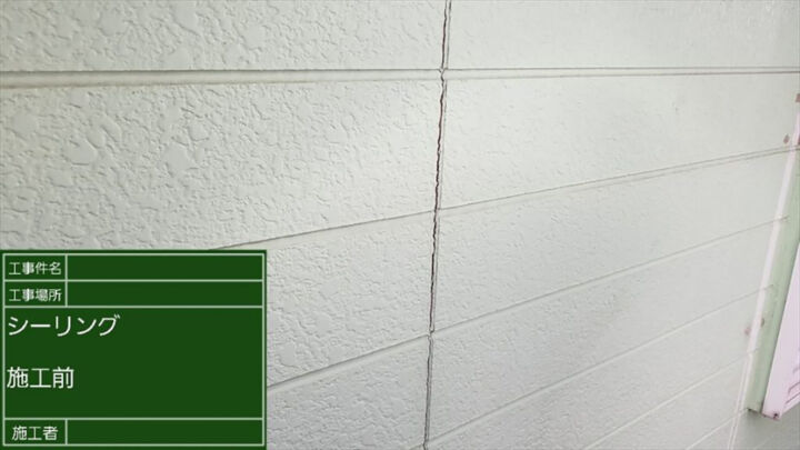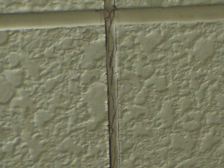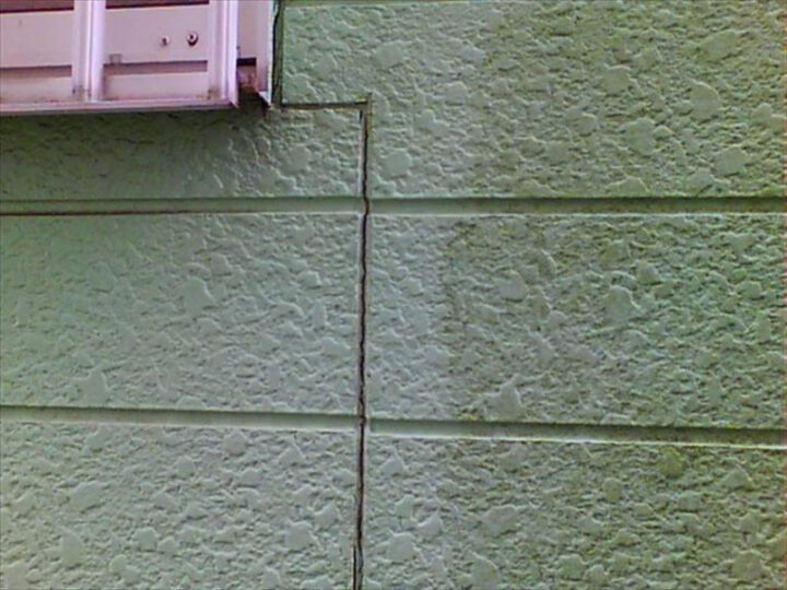 壁のつなぎ目は、雨水等の侵入を防ぐためのシーリングやコーキングと呼ばれる樹脂が埋められていますが、長い年月が経つにつれ 劣化し、写真のような細かい亀裂が生じてきます。(環境にもよりますが、だいたい5年程度と言われています)