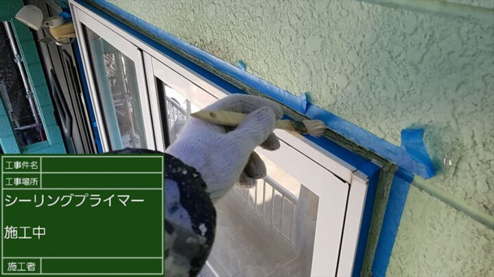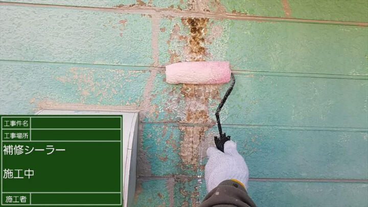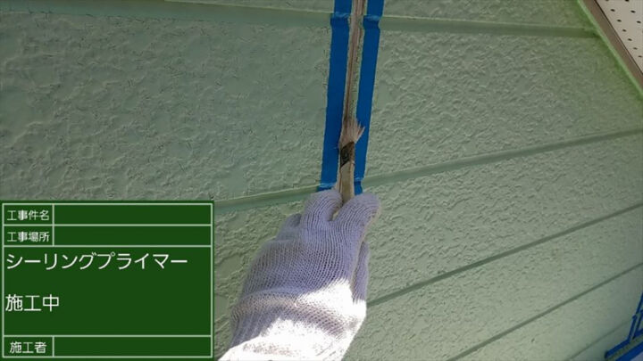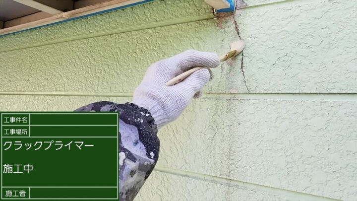 細かいヒビ割れを埋めるため このあとシーリングという樹脂をぬるのですが、その密着を良くするために接着材のような物(プライマー)を塗ります。