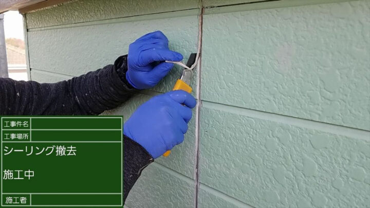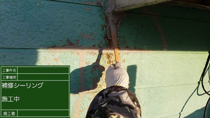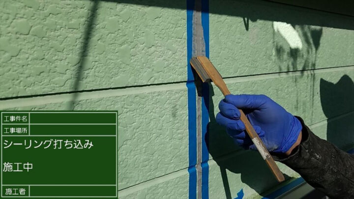 このとき少しでも隙間があったりすると、せっかく新しい材料で溝をふさいでも、雨水が浸入し 壁内部を湿らすことになるので、いい加減にはできません。