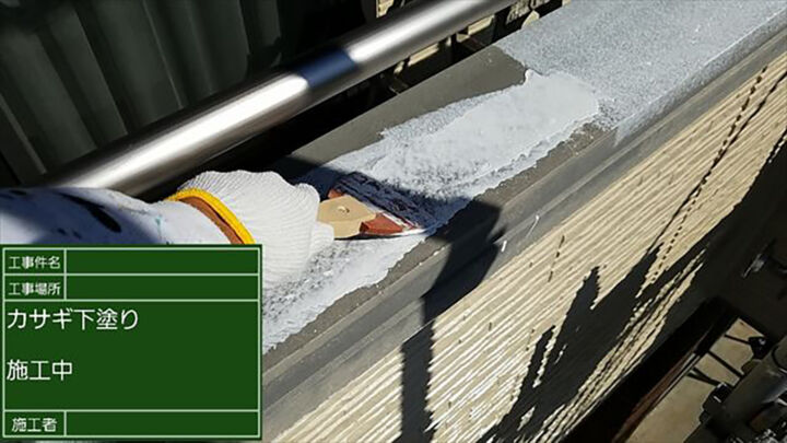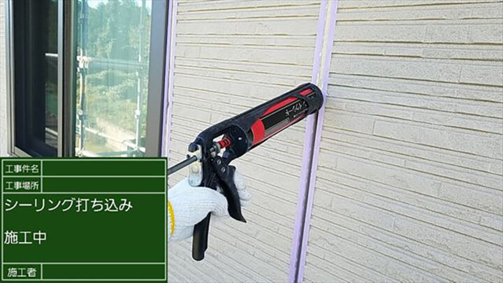 この写真は古く固くなったシーリングを取り除いたあと、新しくシーリングを打ち込んでいるところです。