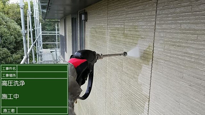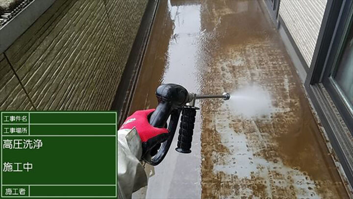 工事初日、高圧洗浄で汚れを取り除きます。