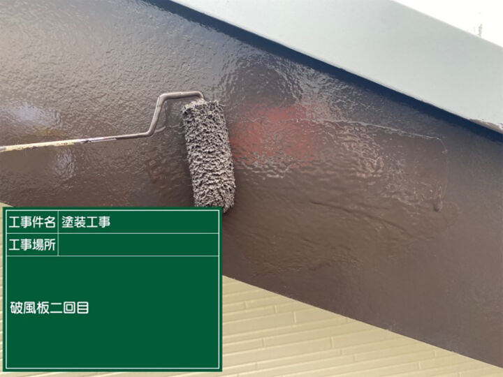 奥にある破風板や、湾曲して見えない場所もしっかり塗り替えます。