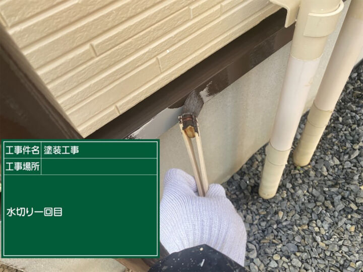 外壁と基礎部分の境目に設置されている水切りの塗り替えです。