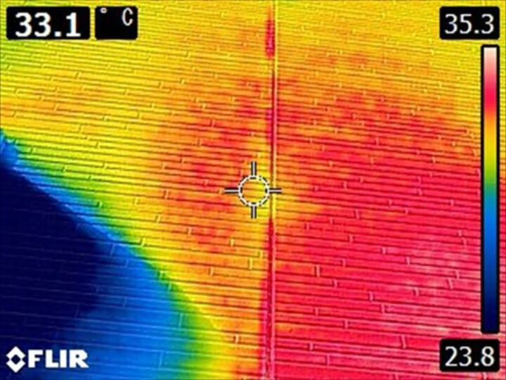 上の写真と同じ箇所をサーモカメラで撮影した様子です。