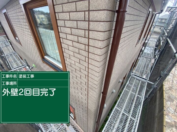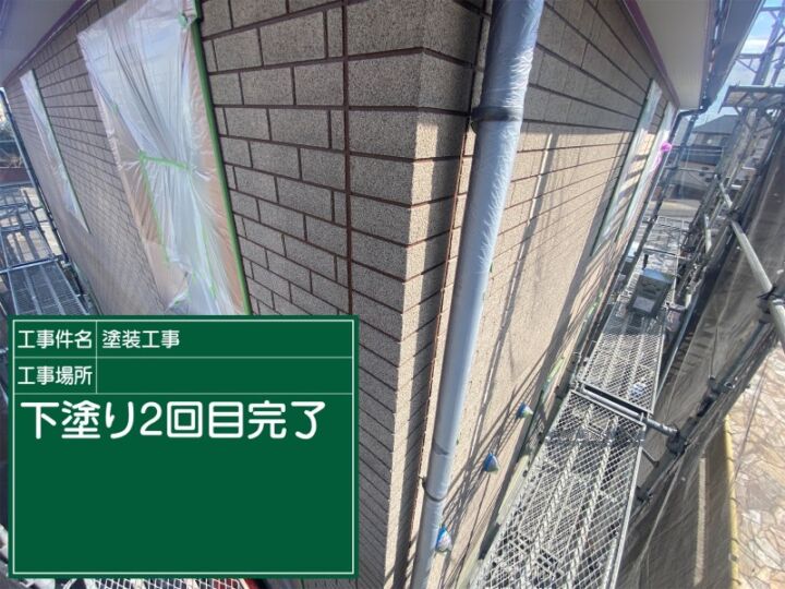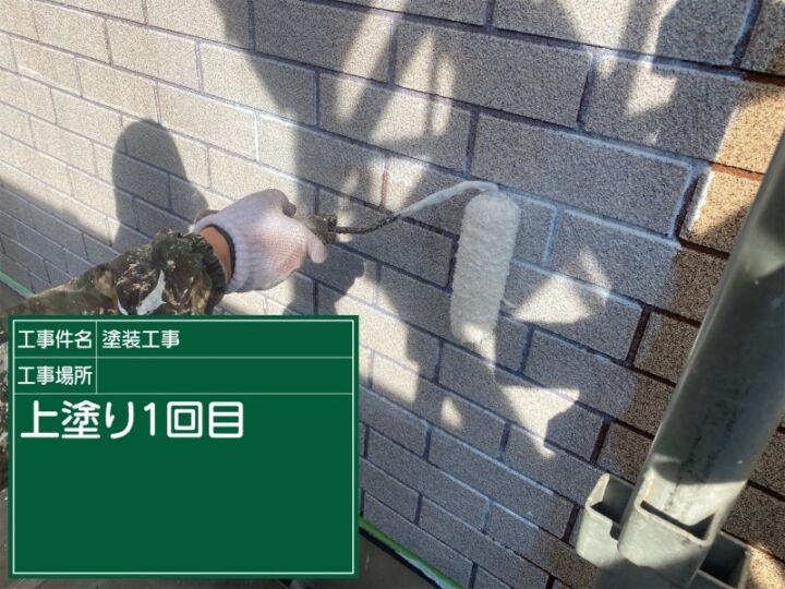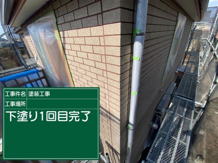 土浦市のクリア塗装、外壁1回目の上塗りが完了しました。