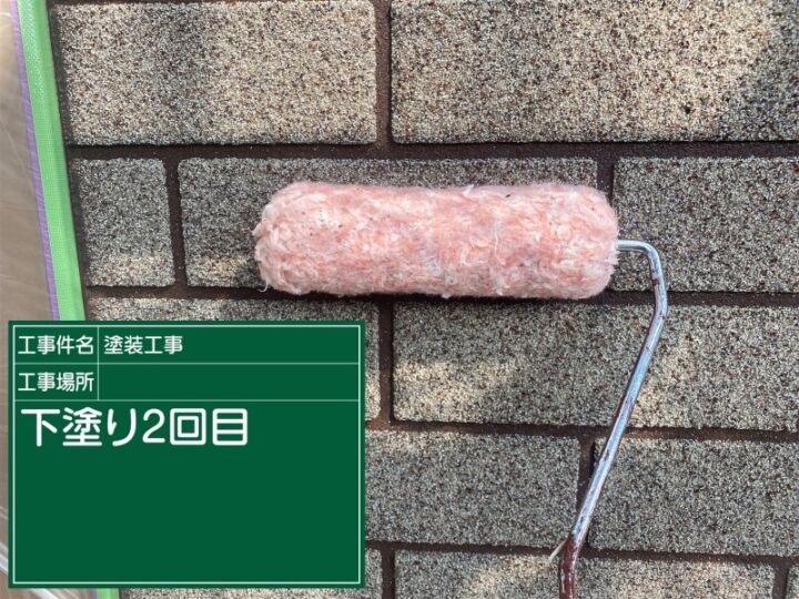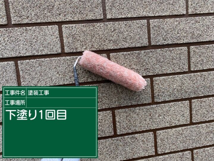 ローラーを使って外壁表面に下塗り剤を塗っていきます。