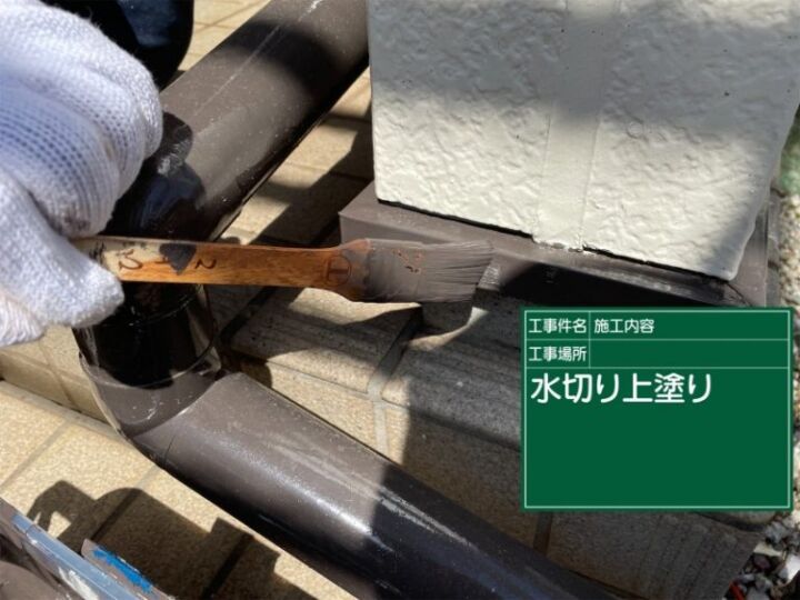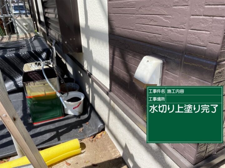 土浦市の外壁塗装現場、水切塗装の様子です。