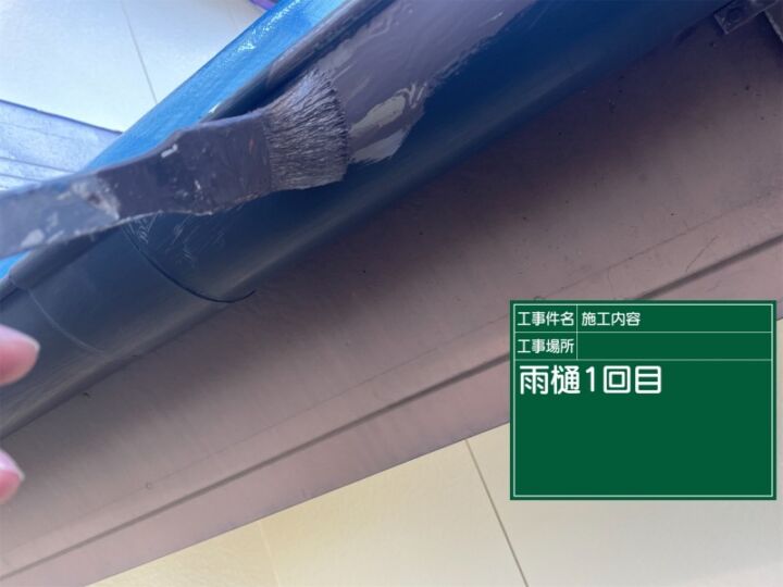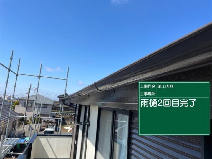 土浦市外壁塗装現場、2回目の雨樋塗装です。
