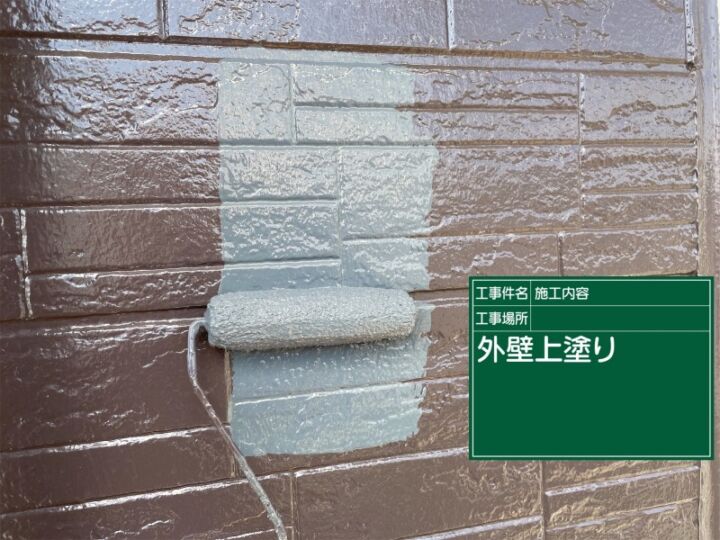 規定の塗布量を守った仕上げ塗料を、2度重ね塗りすることで、外壁下地をしっかり保護して汚れと傷みに強い外壁を作っていきます。