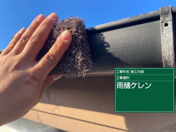 土浦市の外壁塗装現場、雨樋塗装をする前に