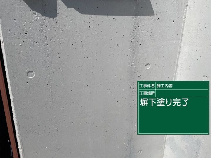 コンクリート塀の塗装、下塗りを終えたあと仕上げ塗料で塗って施工完了です!
