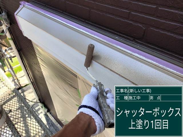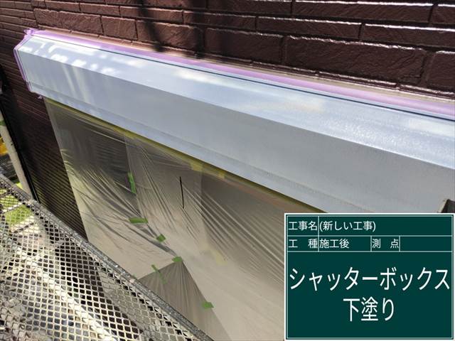 シャッターを巻き込み式で収納するシャッターボックスを塗装します。