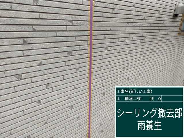 シーリングを撤去したところに雨が入っては困るので、養生をおこないました。