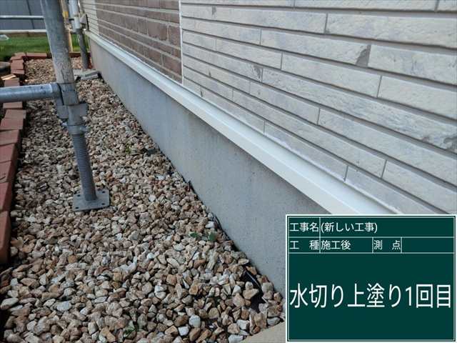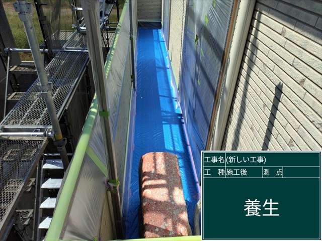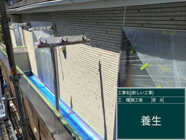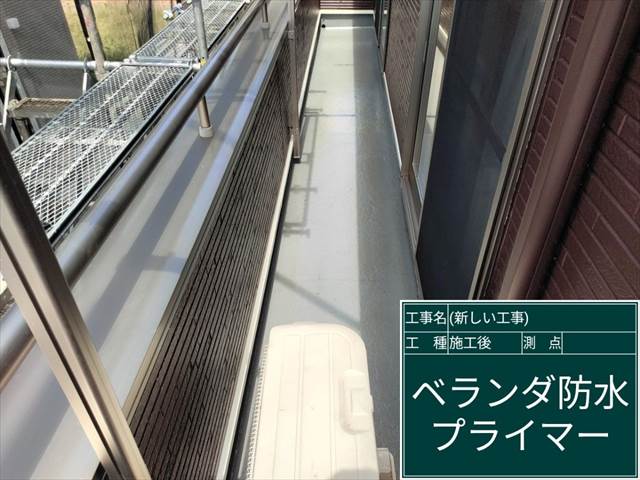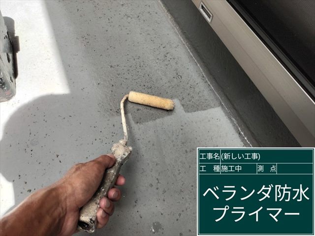 天気が回復したので雨養生をとり、密着性を上げるためのプライマーを塗布します。
