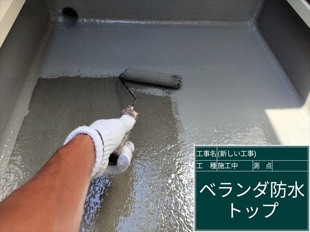 ベランダの塗膜が劣化していたのでトップコートの塗装をおこないます。