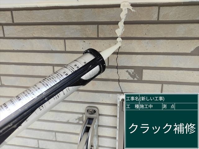 クラックの溝にしっかり入るように補修剤を打ち込んでいきます。