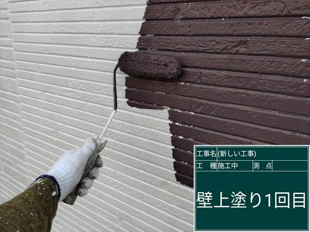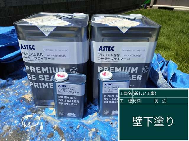 難付着系外壁にも高い付着性をもつ「プレミアムSSシーラープライマー」を塗っていきます。