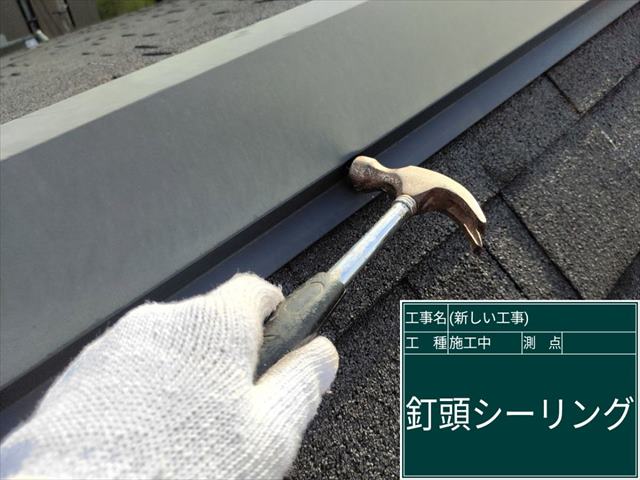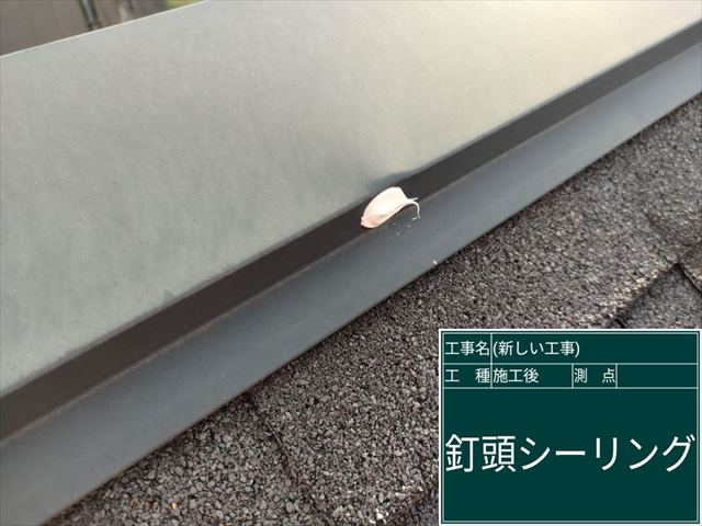 釘頭が浮いてこないよう、シーリングで固定しました。