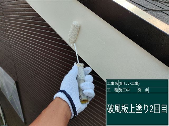破風板塗装にはカビや藻の繁殖を防ぐマックスシールドを使用しました。