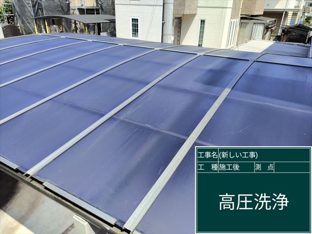 今回は高圧洗浄で汚れを落とし、板金の補修と塗装をすることとなりました。