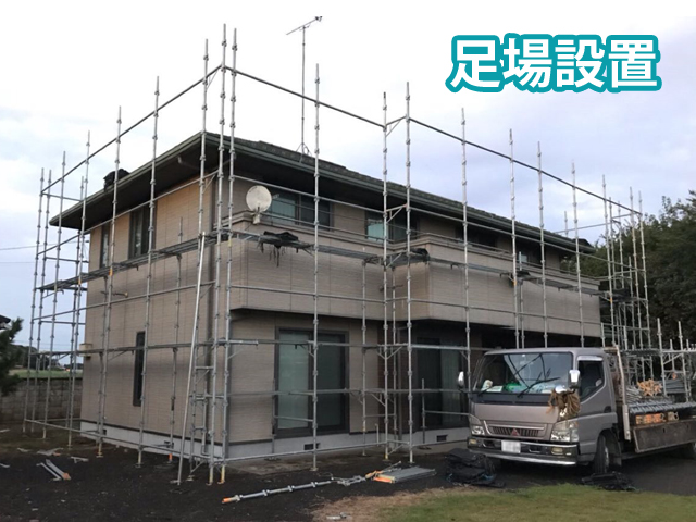 まず現場の周りをぐるっと足場設置をしていきます‼️