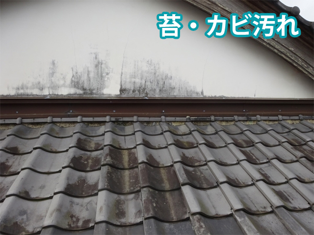 お客さまが一番ご不安に思っていた漆喰の汚れですが、苔やカビで真っ黒になっています😱😱😱