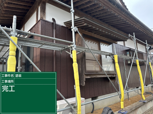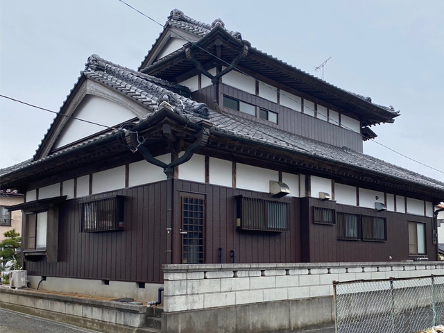現場は素敵な日本家屋で、白い部分が漆喰外壁、茶色の外壁は金属外壁のようです🏠️