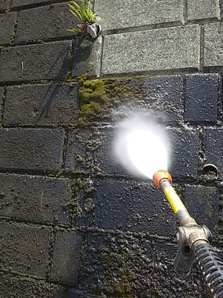 高圧洗浄機を使って作業をします。