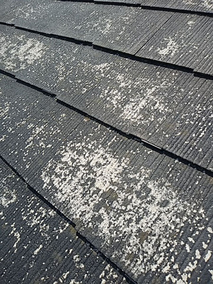屋根ということであまり目立たないですが、予算の都合で残辺塗装をお選びになる場合はこのようなことも起こるので注意です。(※性能上は問題ありません)