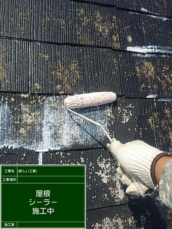 屋根全体に下塗りのシーラーを塗っていきます。