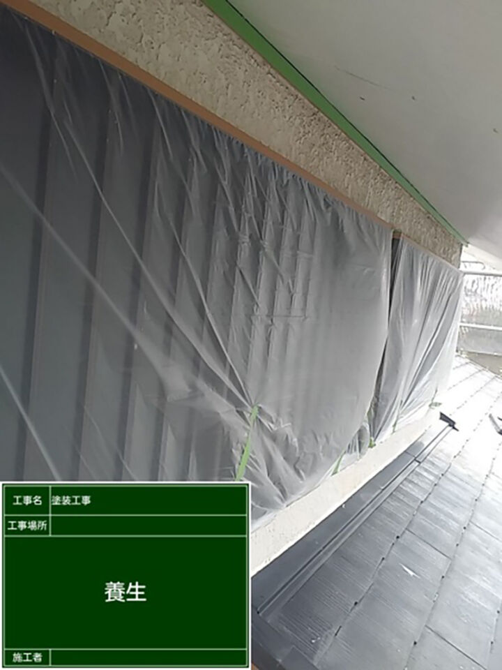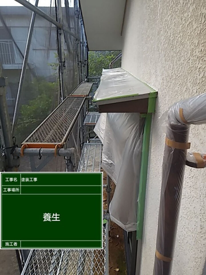 塗装前に養生をして、他の部材が塗装で汚れがつかないようにしていきます。