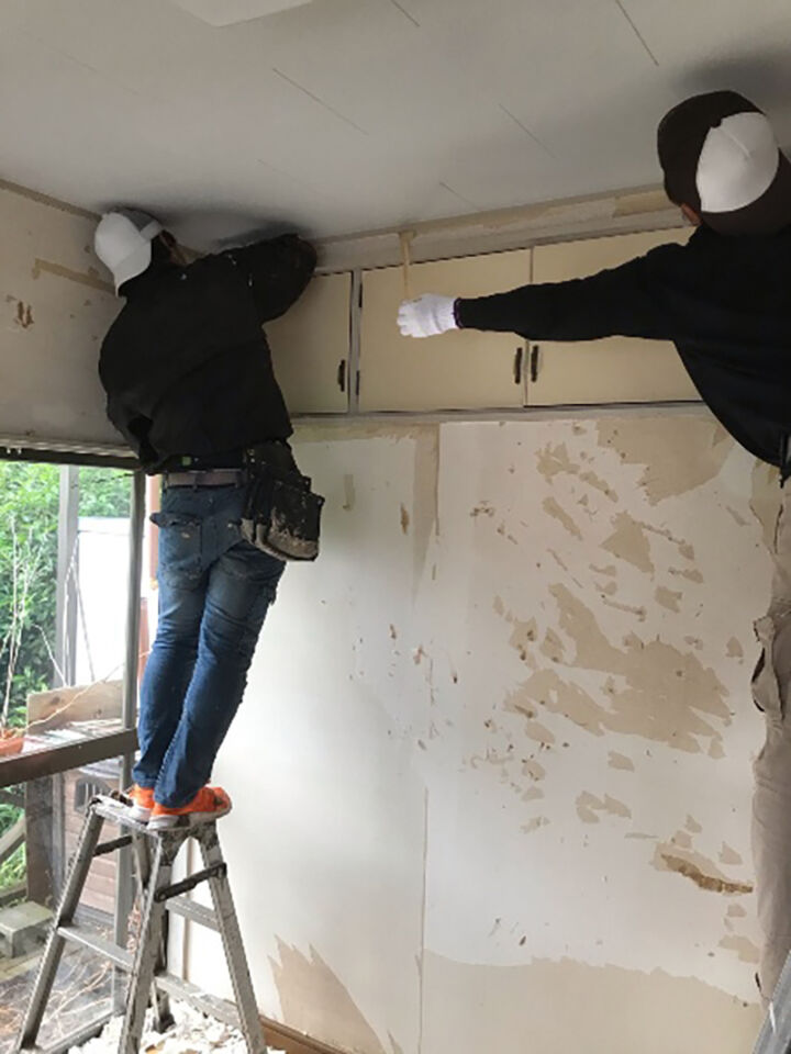 破損した屋根を撤去します。