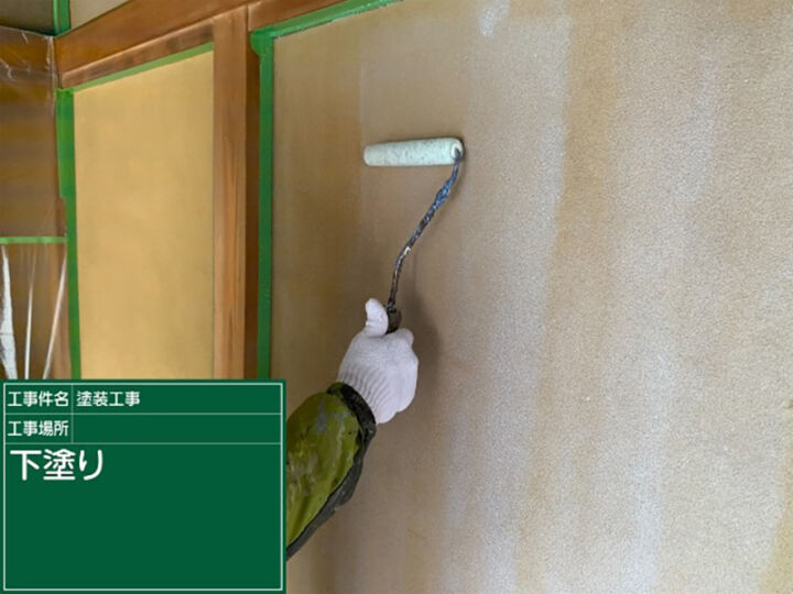 下塗りを行って仕上げ塗料が密着させやすくします。