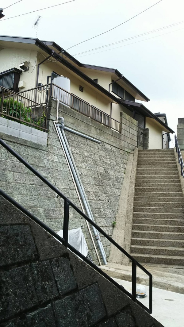 軒樋で集めた雨水を下水に通す縦樋も塗っていきます。
