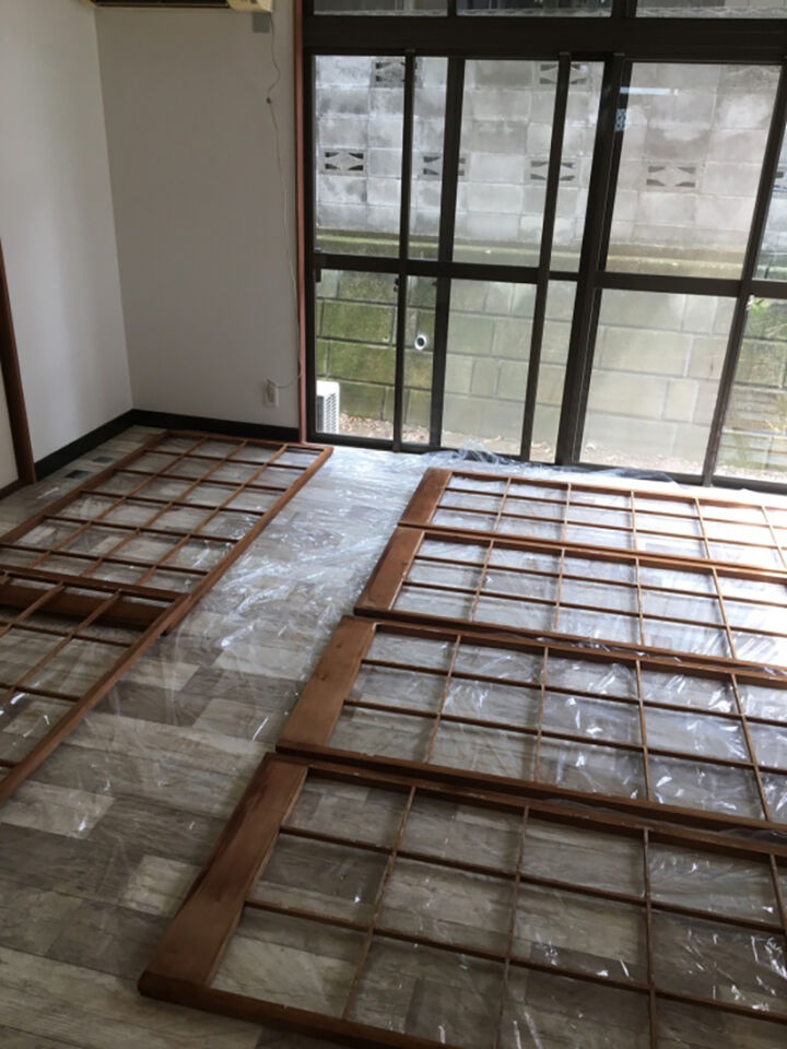 木枠を乾かして、新しく障子紙を貼っていきます。