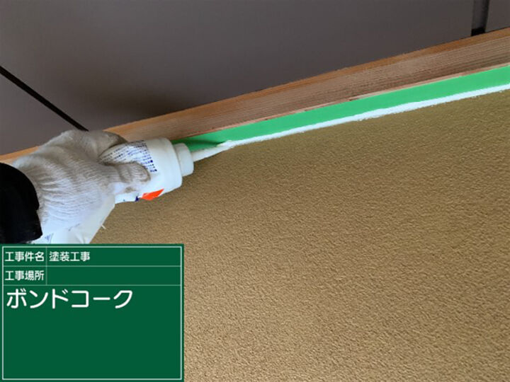 まず外壁と木部の隙間をコーキングで埋めていきます。
