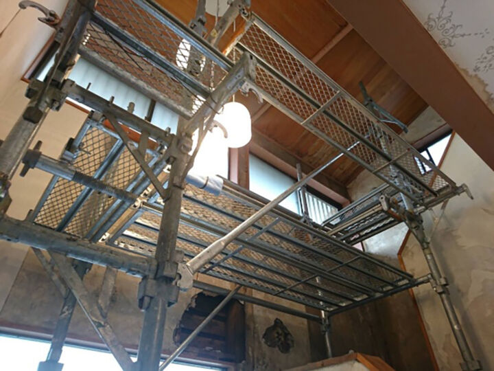 屋内にも高所作業するところには足場を組みます。