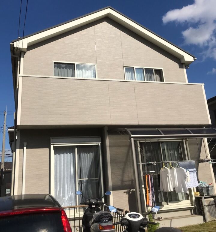 築10年が経ち外壁にも劣化が見られたので、クリア塗装のデメリット/カラー塗装のメリットをお伝えして、超低汚染リファインでの外壁塗装をおこなうことになりました👷♂️