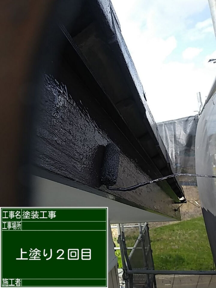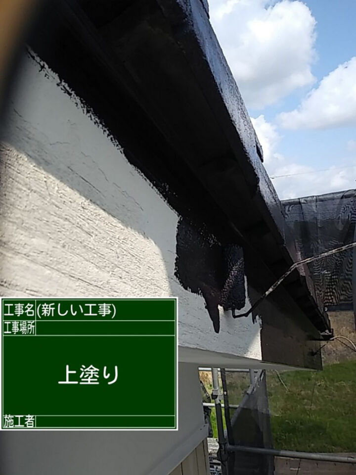 石岡店土浦神立店 霞美装がおこなった土浦市の空き家リフォーム現場、破風板2回目の上塗りです。