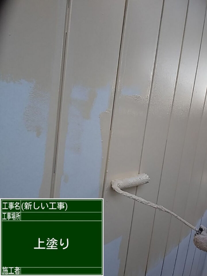 金属サイディング外壁、上塗り塗装1回目が終わりました