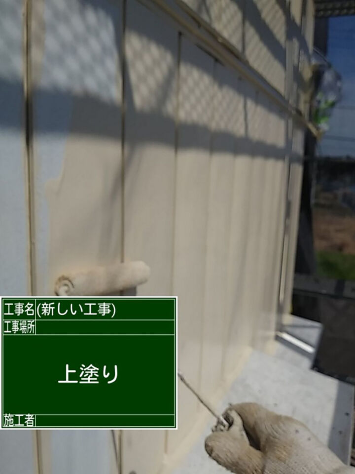 霞美装 土浦神立店が土浦市でおこなった金属サイディング外壁塗装、上塗りの1回目が完了しました。