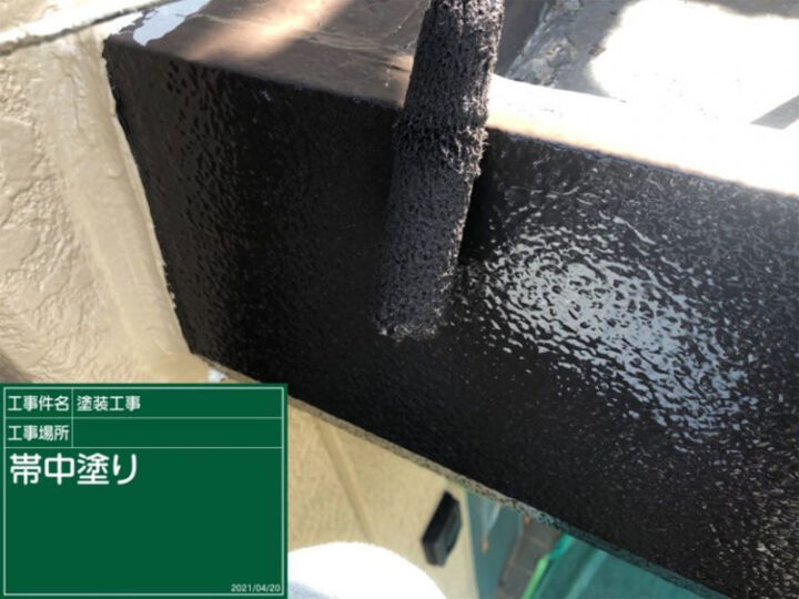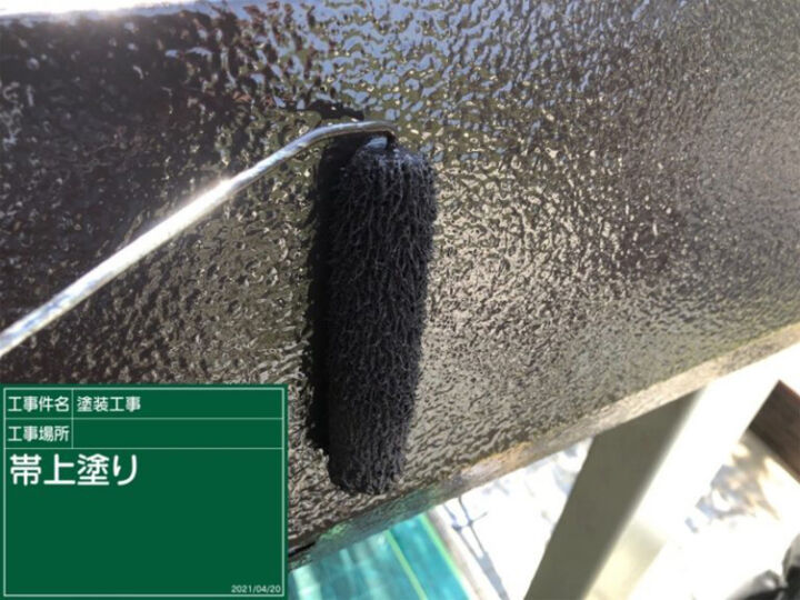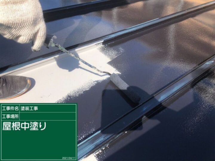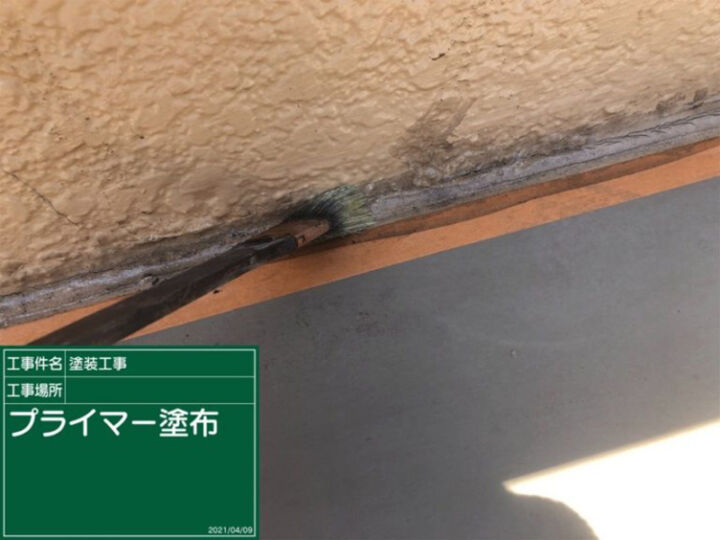 下屋根はコロニアル瓦のため、こちらも下塗りを行います。