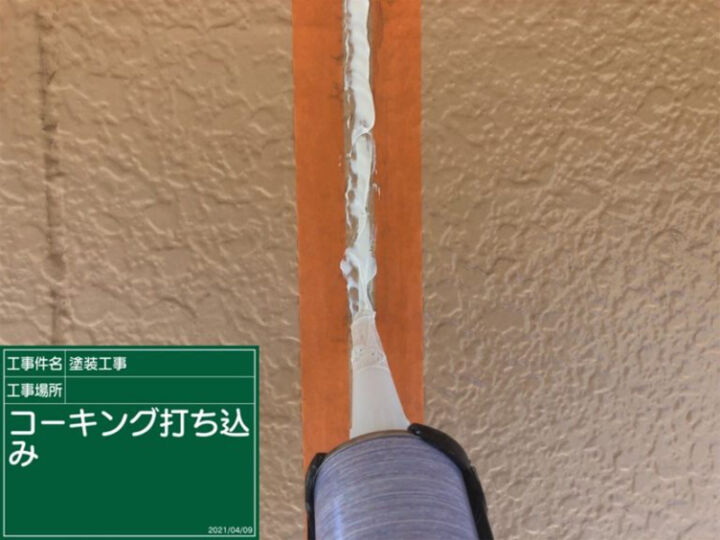 劣化したコーキングでは、隙間が生まれて外壁内部に雨水が侵入してしまうので、しっかり隙間を埋めていきます。
