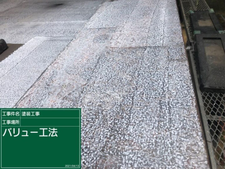 軽量スレート製の屋根材に下塗り剤を浸透させ、上に塗るトップ剤の染み込みを防ぎむらのない仕上がりにします。