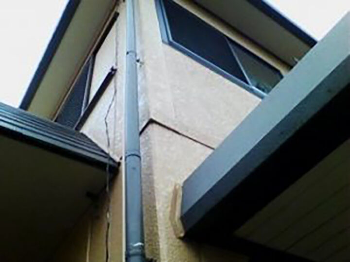 ポリ塩化ビニル樹脂の雨樋は、塗り替えによって補強などが必要ない部材ですが、他の部材を塗替えているので古い色あせのままだと格好が悪くなってしまいます。